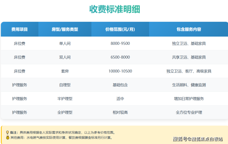 向阳院长者公寓的收费采用透明化结构,主要由以下几部分构成:
