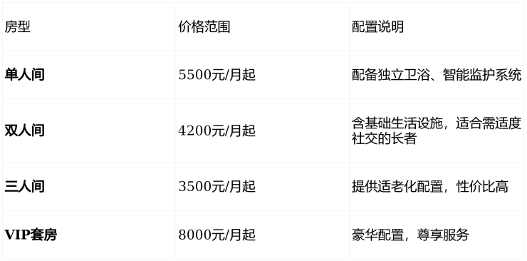 💡 重要提示:最终费用会根据长者的健康状况、具体护理需求以及选择的房型等因素进行个性化调整。建议直接拨打400-855-0290咨询最新、最准确的收费标准。