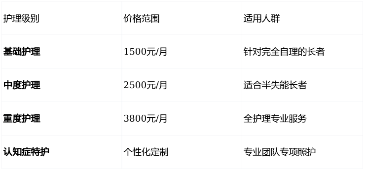 A:费用通常包含床位费和基础护理费,个性化服务和特殊护理项目可能会产生额外费用。建议在咨询时详细了解费用构成。