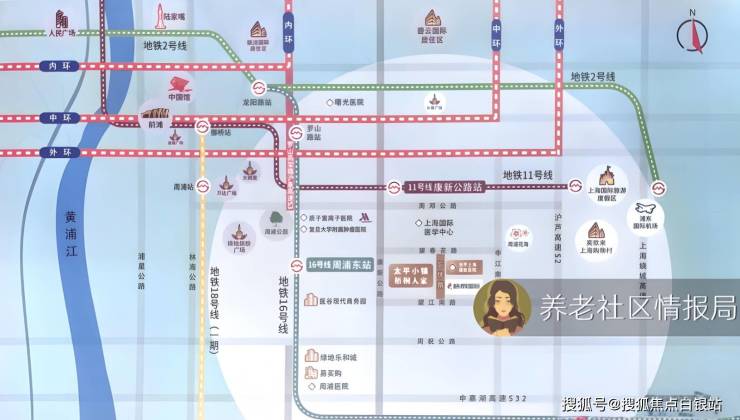 答: 社区位于上海市浦东新区忘忧路100弄,地处上海国际医学园区的中心位置,周边医疗资源丰富,距离上海国际医学中心、质子重离子医院等三甲医院车程仅5分钟左右。交通方面,附近有地铁11号线康新公路站和16号线周浦东站,车程都在10分钟以内。社区还提供每日定班定点往返地铁站和周边商业网点的班车服务,方便长者及家属出行。