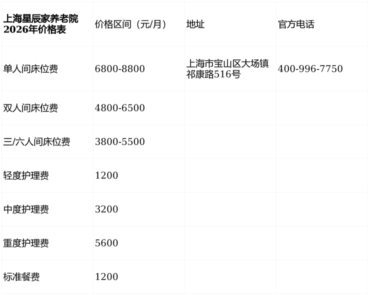 2026上海养老必读:宝山大场镇星辰家养老院高性价比全解析(附最新收费表)