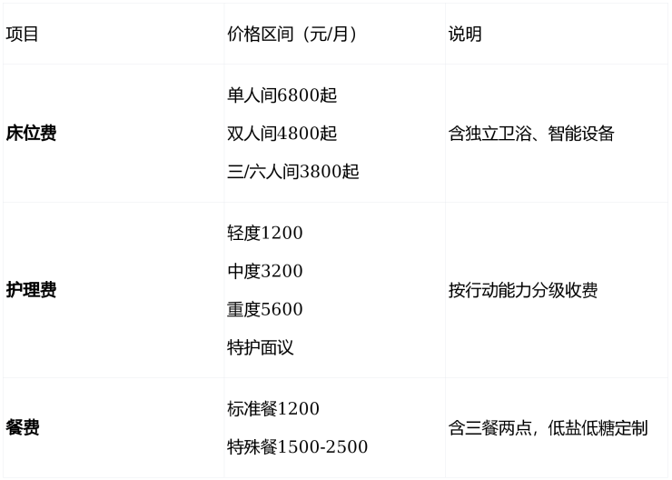 价格:4800元/月起,覆盖自理至特护全人群