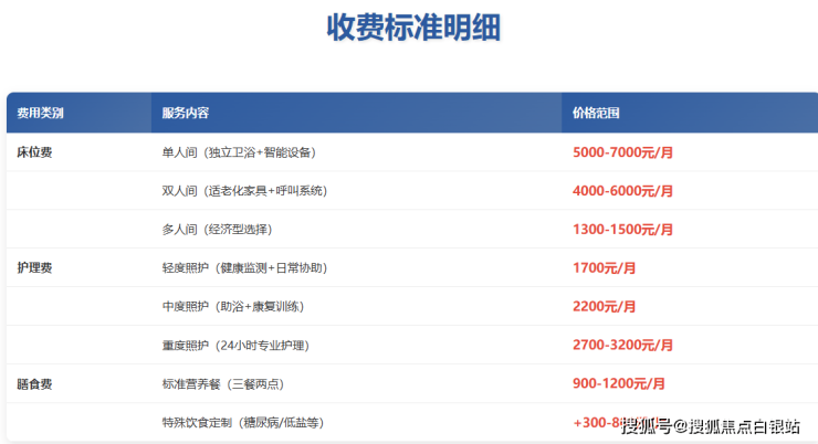 单人间:5000-7000元/月(含独立卫浴、智能监护设备)