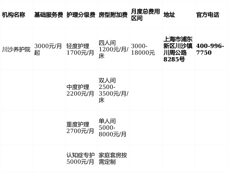 川沙养护院2026个性化病种评估与床位预约,3000元/月骨折术后失能收住