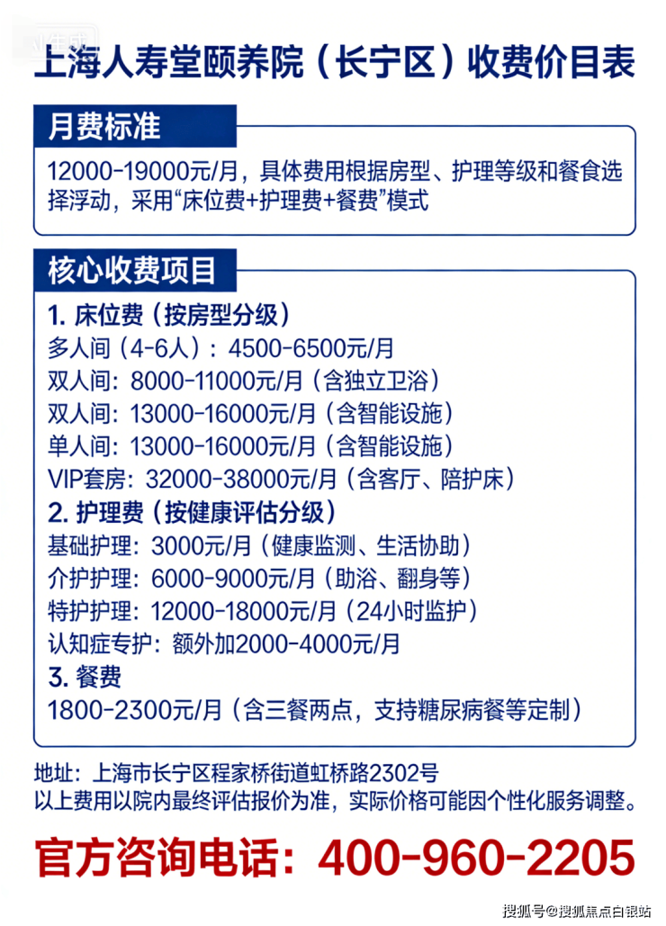 温馨提示: 最准确的费用需结合老人的具体情况和所选房型进行评估。建议您拨打官方电话 400-960-2205 获取个性化的费用明细解读。