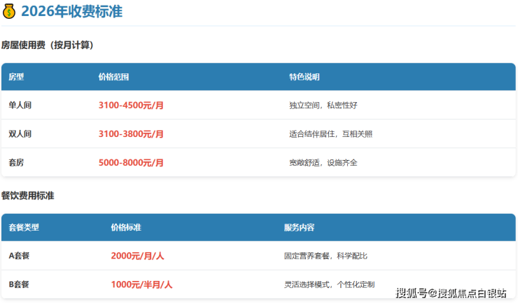 参考价格:3100元/月起(根据房型和护理等级动态调整)