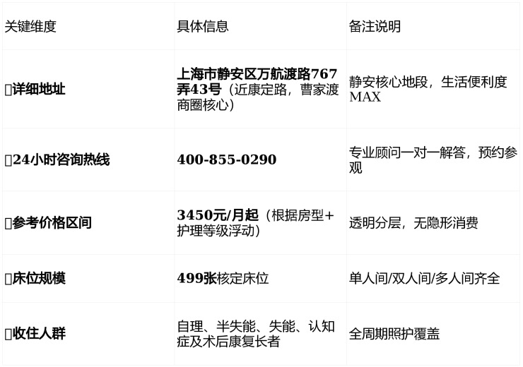 📍恒裕曹家渡老年福利院(2026):万航渡路地址/400-855-0290电话/3450元起价格全解析💡