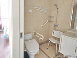 L型扶手系统:卫生间、走廊、床边都安装了符合人体工学的扶手,85cm高度适合坐姿和站姿转换。