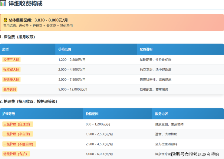 温馨提示:以上费用为参考标准,具体收费根据长者实际健康状况评估确定。建议拨打400-855-0290获取个性化费用明细解读和专业评估。