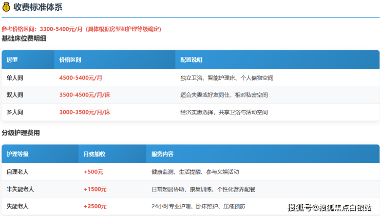 参考价格:3300-5400元/月(根据房型和护理等级)