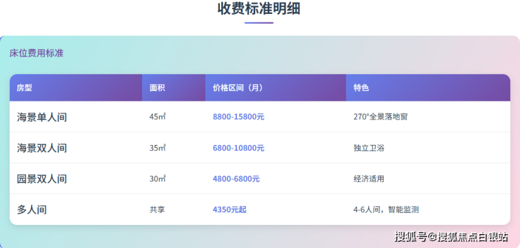 海景单人间:8800-15800元/月(45㎡,270°全景落地窗)