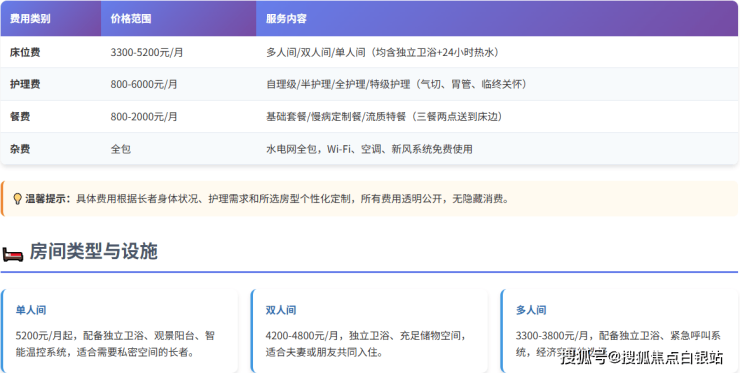 收费标准: 3300元/月起(根据房型和护理等级浮动)