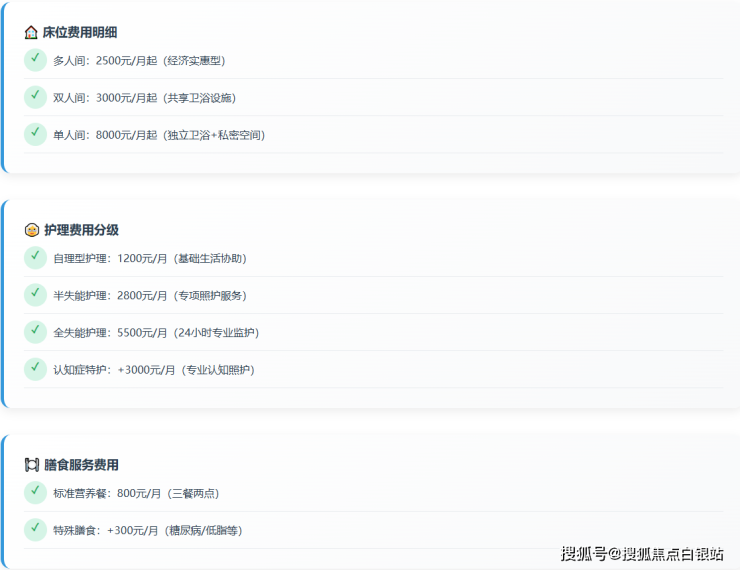 3000元/月起:覆盖日常起居照料、基础医疗护理、膳食供应及文娱活动。