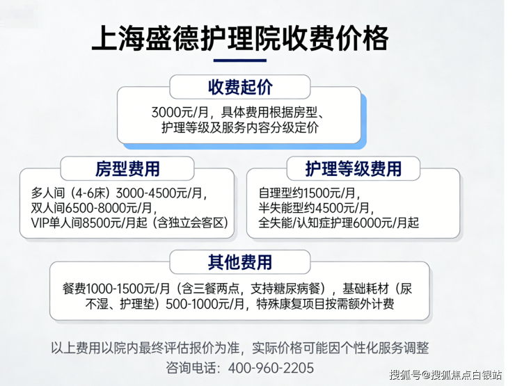 温馨提示:最准确的费用结合老人实际身体状况和房型评估。建议拨打400-960-2205获取个性化费用明细解读。