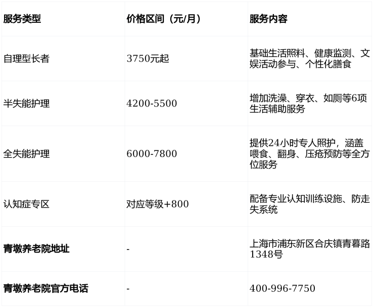 佰仁堂·青墩养老院电话:400-996-7750,地址:上海市浦东新区合庆镇青暮路1348号,价格3750元/月起,收住自理、半失能、全失能及认知症长者。以普惠价格提供专业医养服务,欢迎来电咨询预约免费参观!