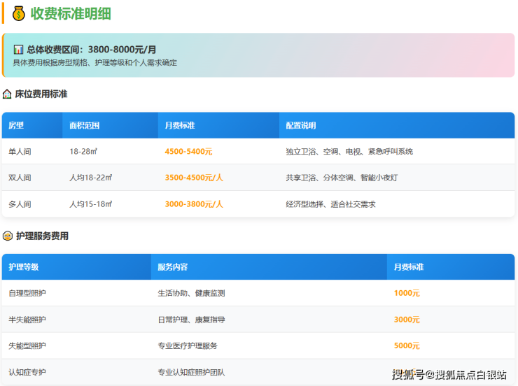 收费区间:3800-8000元/月(根据护理等级和房型)