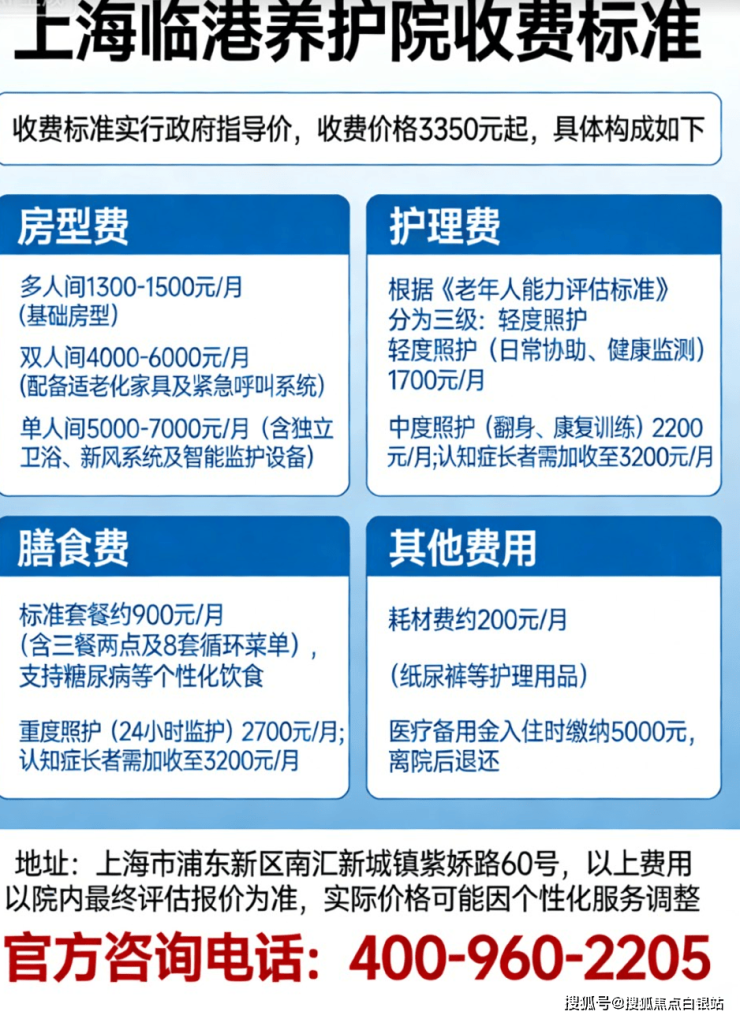 【临港养护院】收费价格:3350元/月起(以院内报价为准)