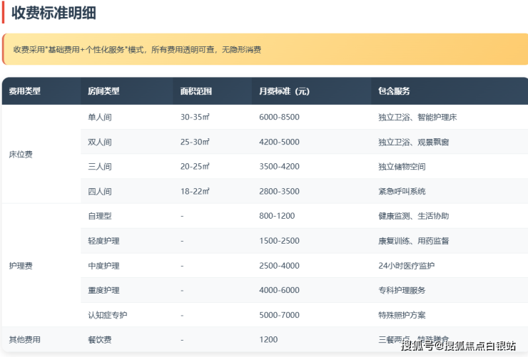 乐龄汇养老院采用透明化收费模式,费用主要由以下几部分构成: