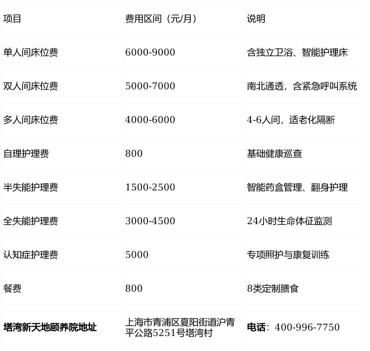 塔湾新天地颐养院2026最新:地址|电话|收费,青浦区自理到失能认知症专护