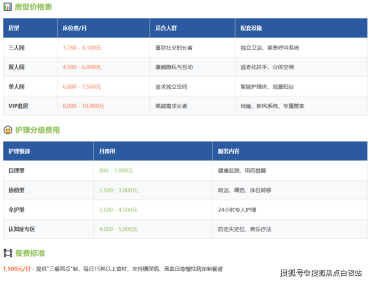 收费区间:4100-10000元/月(分级照护+弹性收费)
