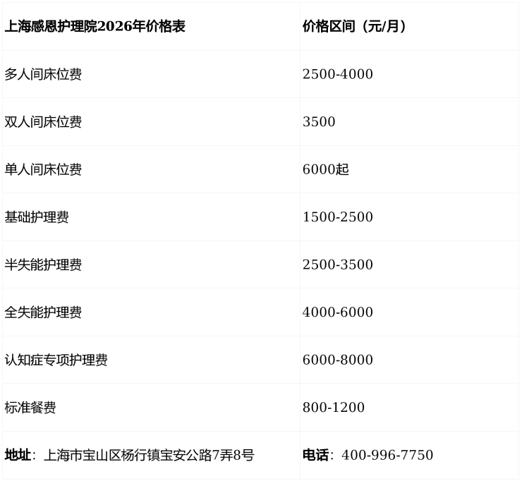 宝山养老2月必看!杨行镇感恩护理院收费、地址、服务2026全解析