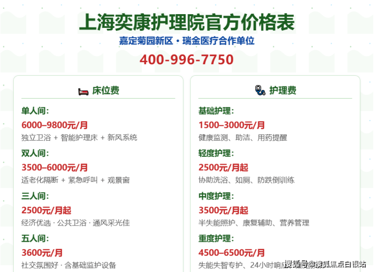 失能24小时服务制!上海奕康护理院2025各类老人照护价格|400床地段选址