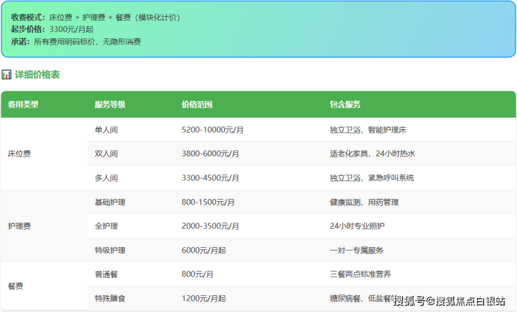 多人间:3300-4500元/月(性价比最高,适老化设计+独立卫浴)