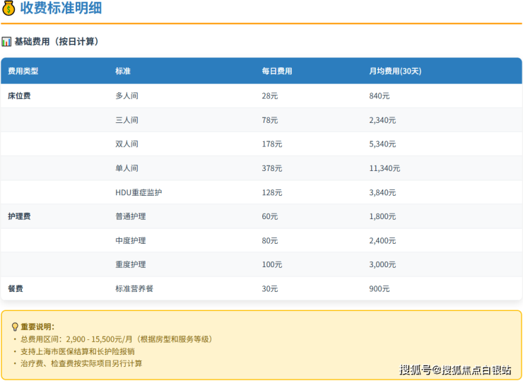 上海银美嘉宜医院采用透明分层收费模式,月均总费用区间为2900-15500元,具体构成如下: