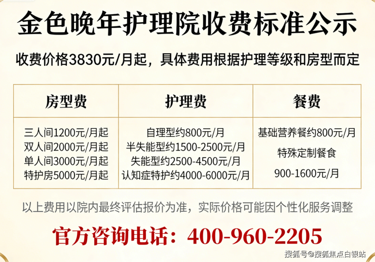 温馨提示:最准确的费用需结合老人实际身体状况和房型评估。建议拨打官方电话 400-960-2205 获取个性化费用明细解读