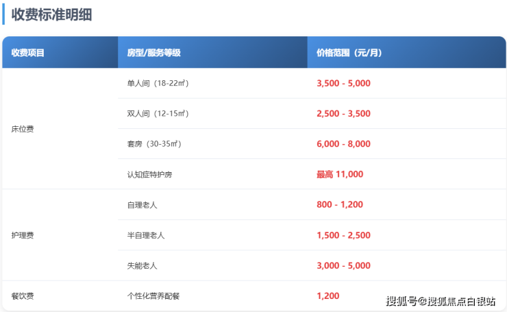 参考价格区间:5050-11000元/月(具体根据长者实际需求确定)