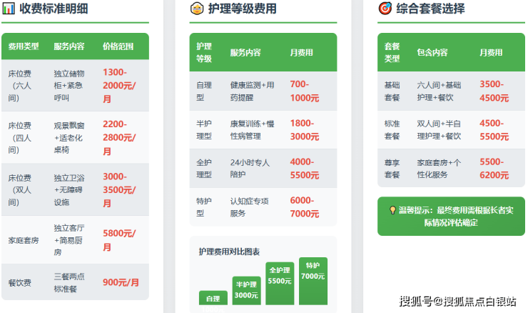 新浜敬老院采用"床位费+护理费+餐费"的透明收费模式,具体构成如下: