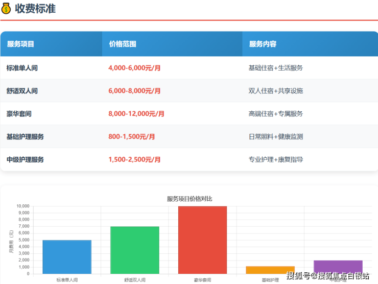 具体收费标准需以院内实际报价为准,建议有意向的长者及家属拨打咨询电话400-855-0290了解最新收费详情。