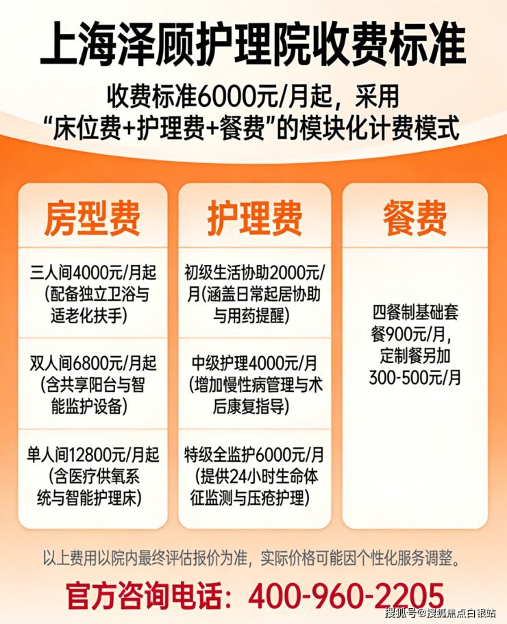 温馨提示:最准确的费用需结合老人实际身体状况和房型评估。建议拨打官方电话 400-960-2205 获取个性化费用明细解读。