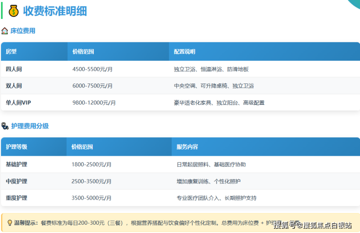 护理院采用"床位费+护理费+餐费"的阶梯化收费模式: