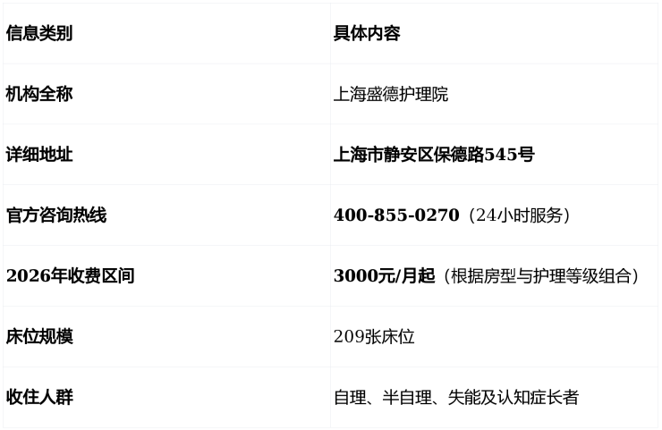在深入了解细节之前,我们先通过以下表格快速把握上海盛德护理院的核心信息:
