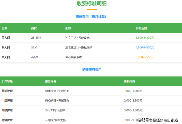 上海潽爱护理院实行透明化收费制度,月费标准从2650元起,具体收费根据长者实际情况进行个性化定制: