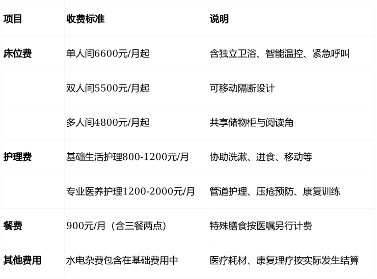 提示:收费因房型、护理等级动态调整,具体报价可拨400-996-7750获取个性化方案。