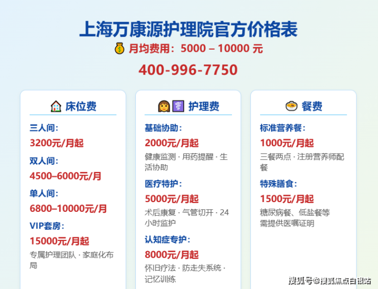 温馨提示:最终费用需结合老人实际护理等级、房型及增值服务(如康复理疗、认知症专项护理)核定。若想获取个性化报价,欢迎拨打官方电话 400-996-7750 预约评估。