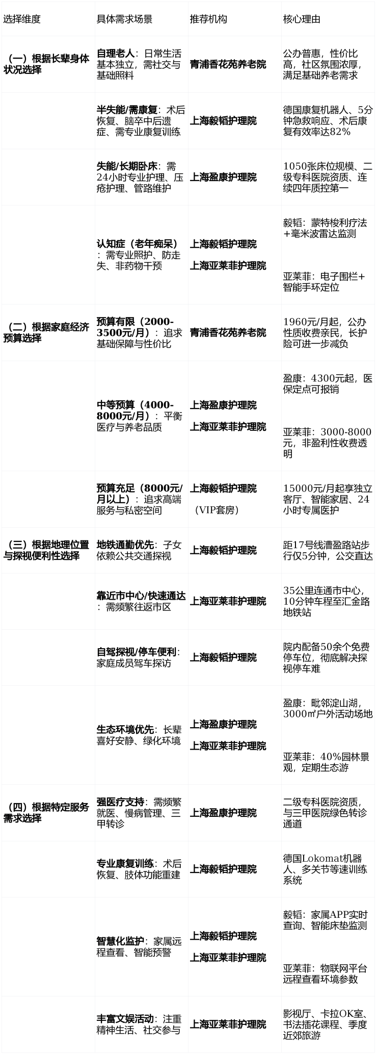选择养老院是一项需要综合考量的重要家庭决策。无论您的长辈需要的是普惠型的基础照料、专业级的医疗康复,还是高品质的医养融合服务,青浦区香花桥街道的这四家机构都能提供相应的解决方案。