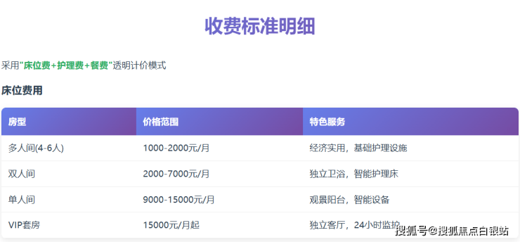 床位费根据居住私密性和舒适度分为不同档次,满足多样化需求: