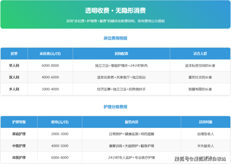 **标准套餐:**7000-8500元/月(双人间+升级照护+定制餐食)