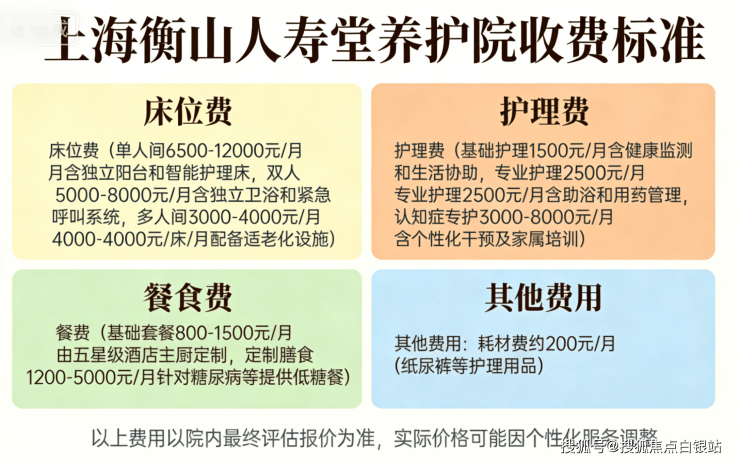 床位费:单人间6500元/月起,双人间5000元/月起,VIP套房12000元/月起