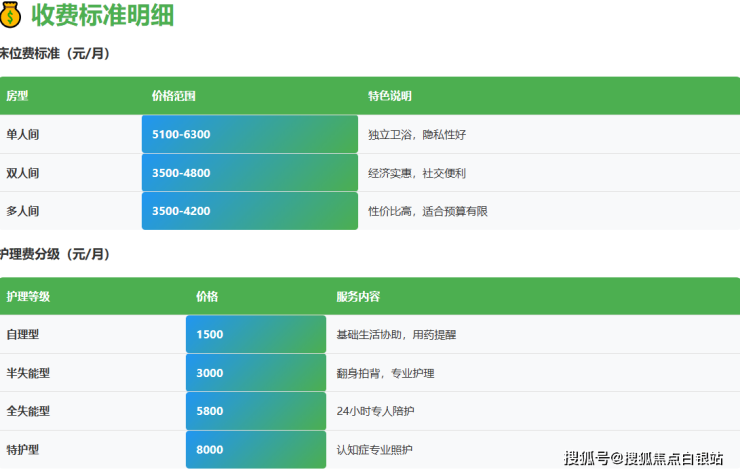 参考价格:3500-9300元/月(根据房型和护理等级差异)