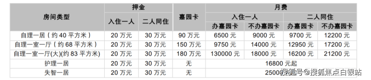 活力自理区:一居室(约40-60㎡)参考价 6500-9000元/人/月;一室一厅或两居室(70-90㎡)参考价 9700-13000元/人/月 。