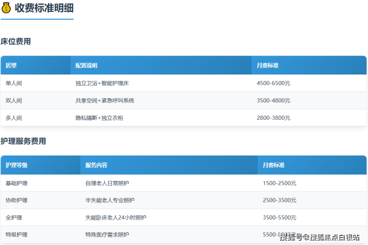 自理型护理:800元/月起(鼓励自主生活)