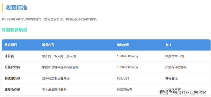 收费标准包含床位费、护理费、伙食费等基础项目,让家属对费用构成一目了然,避免了隐形收费的困扰。