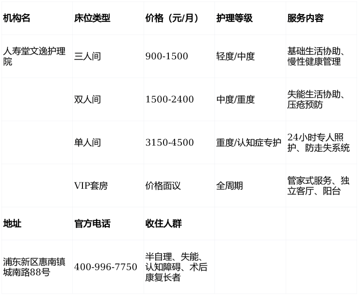 2026上海浦东养老必看!人寿堂文逸护理院地址+收费+电话全解析(3月更新)