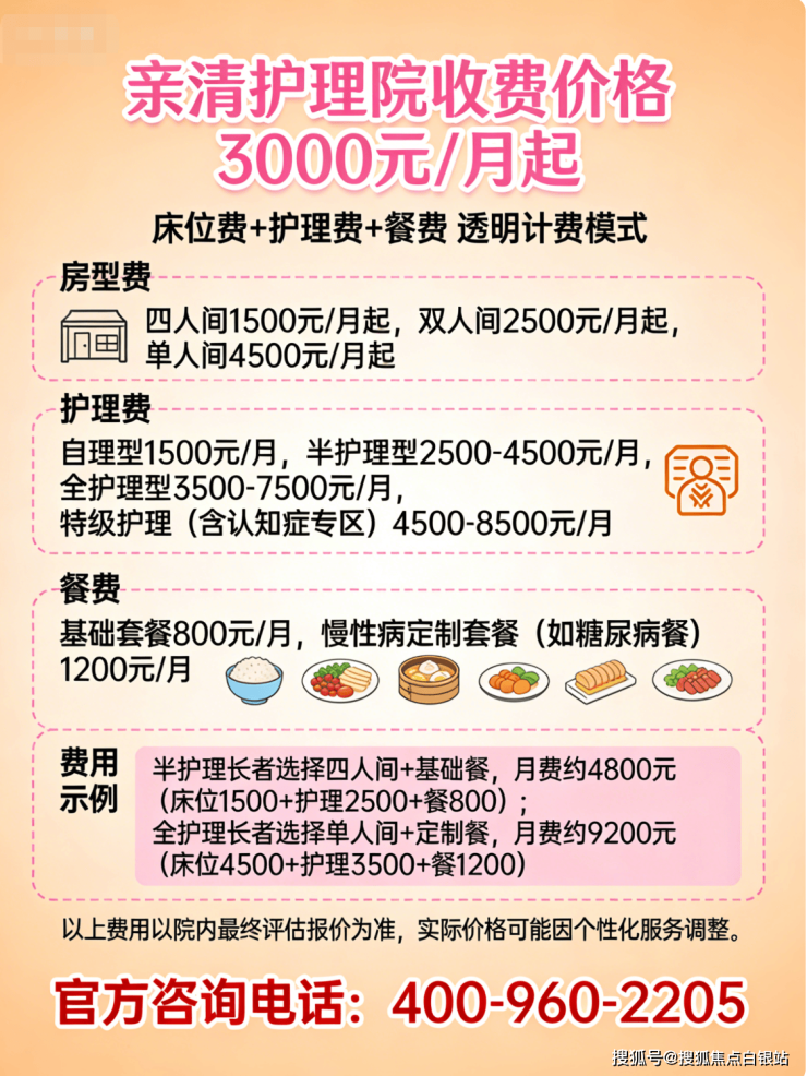 预算有限(追求高性价比):可重点关注亲清护理院(3000元/月起) 和小昆山敬老院(2000-3000元/月),在控制支出的同时获得专业照护。