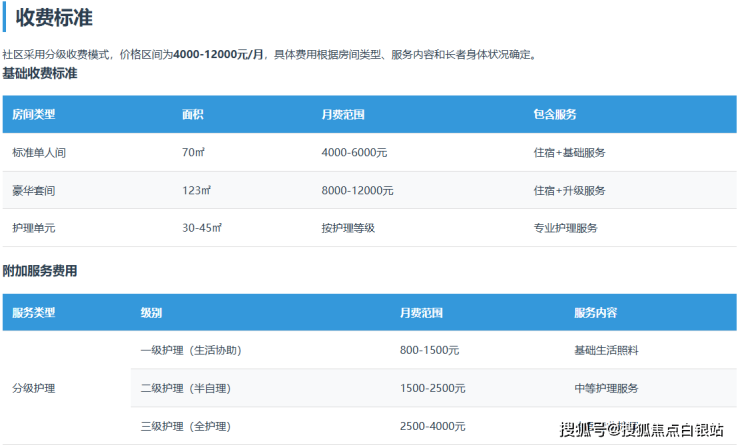 上海亲和谷养老社区采用分级收费模式,价格区间为4000-12000元/月,具体费用根据以下因素确定: