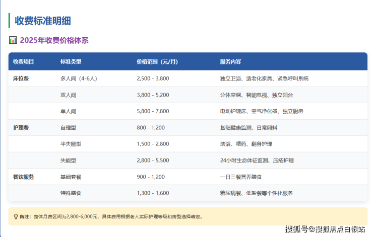 收费标准:2800-6000元/月(根据护理等级和房型)